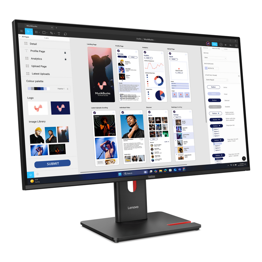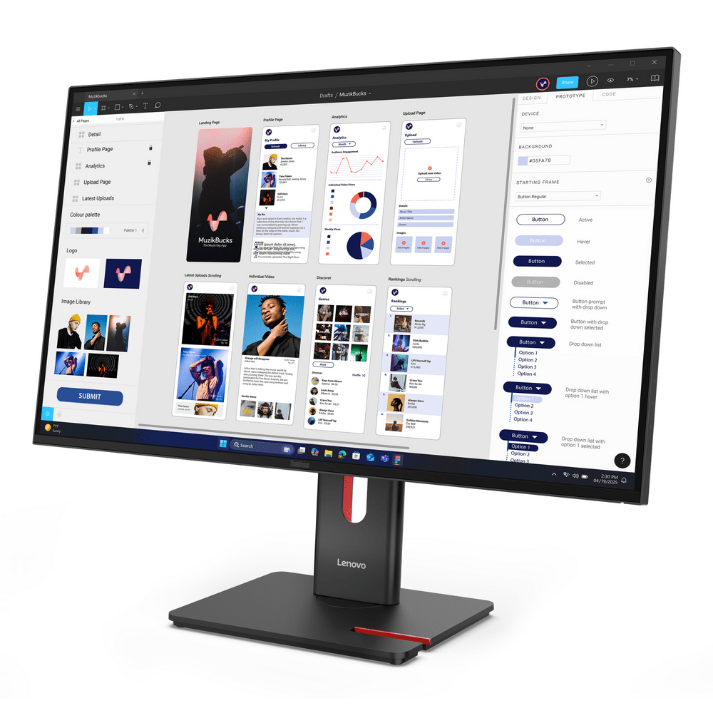 Lenovo ThinkVision T32UD-40 Monitor. Bildschirmdiagonale: 80 cm (31.5"), Display-Auflösung: 3840 x 2160 Pixel, HD-Typ: 4K Ultra HD, Bildschirmtechnologie: LCD, Reaktionszeit: 6 ms, Natives Seitenverhältnis: 16:9, Bildwinkel, horizontal: 178°, Bildwinkel, vertikal: 178°. Integrierter USB-Hub. VESA-Halterung, Höhenverstellung. Produktfarbe: Schwarz