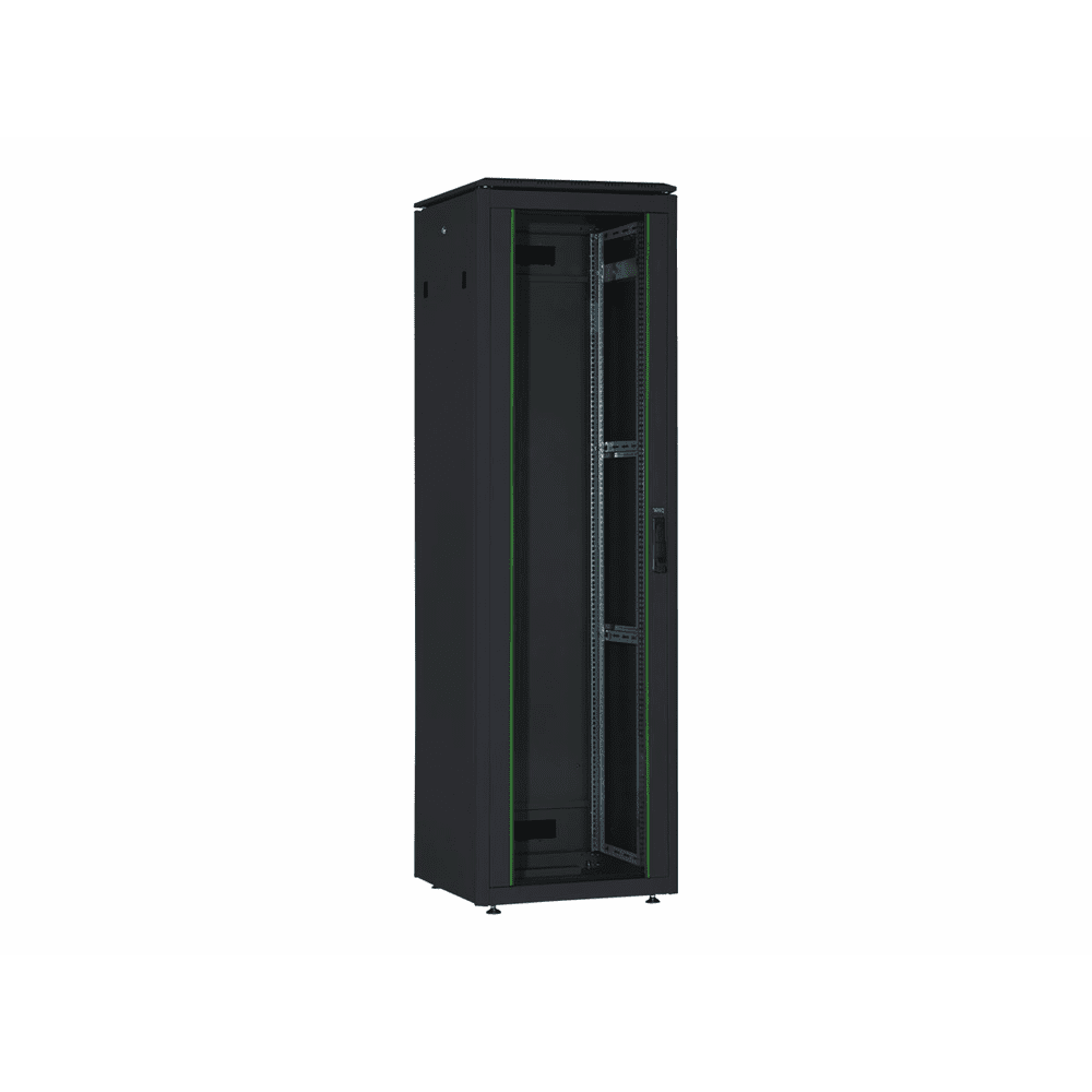 | Leistungsmerkmale | Abschließbare Rücktüre, verschließbare Seitenwand, Glastür, verstellbare Schienen |